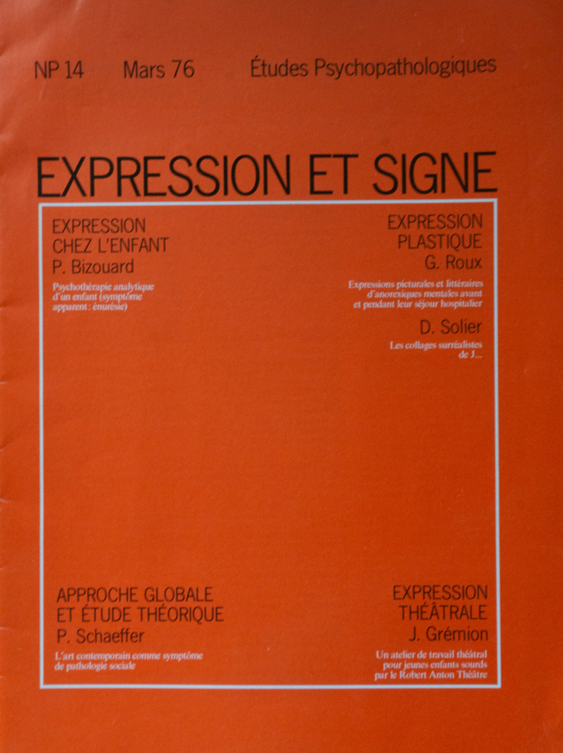 Par le Robert Anton Théâtre Ouvert en Novembre 1975, cet atelier théâtral pour jeunes enfants sourds est nouveau en France. Dans sa première phase de 15 mois, il vise à constituer les premières ébauches d’un langage nouveau de communication pouvant conduire à un processus de …